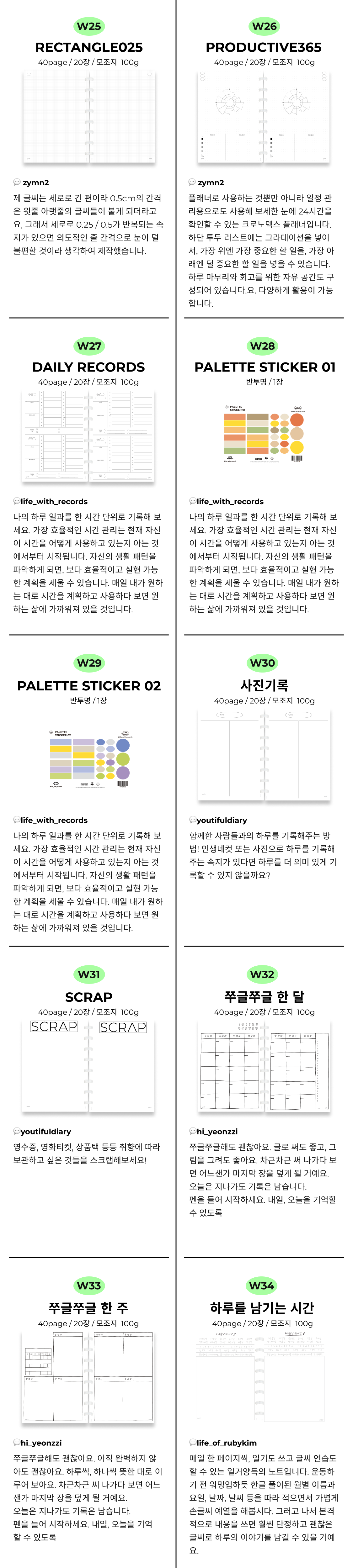 세트 상품 * 기본 속지 * 스티커 * 포스트 카드 * 텍스트 카드