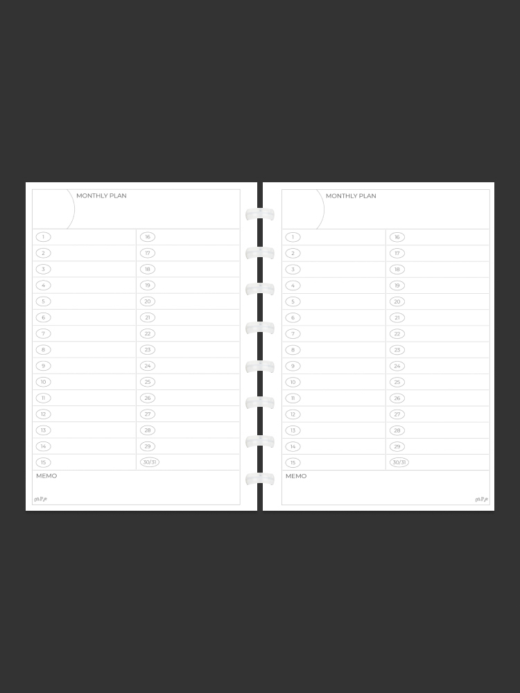 세로 줄로 날짜가 쓰여있는 Monthly scheduler는 기간이 있는 일정 관리에 적합하며, 한 달의 계획을 정리해 볼 수도 있습니다. 한 달의 계획이 한눈에 보이는 스케쥴러에 일정을 정리해보세요. 긴 일정을 눈에 띄게 표시하고 하루하루 중점이 되는 내용을 적어볼 수 있습니다.