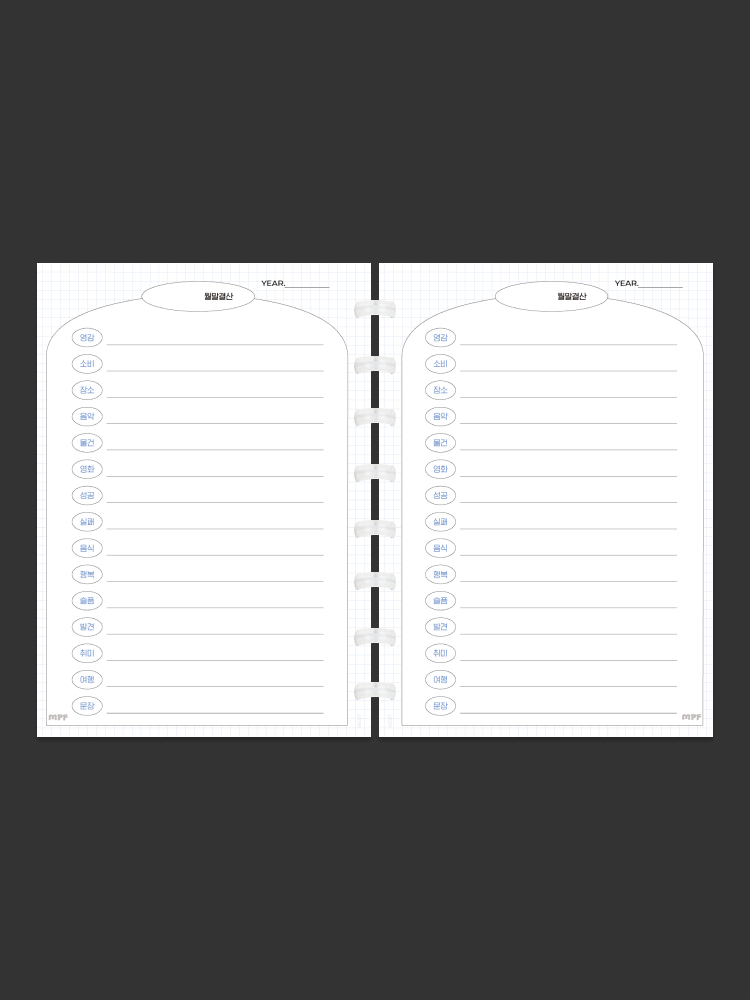 분기마다 찾아오는 학교 시험, 자격증 준비 등 통념을 담은 속지들로 구성된 노트는 많습니다.